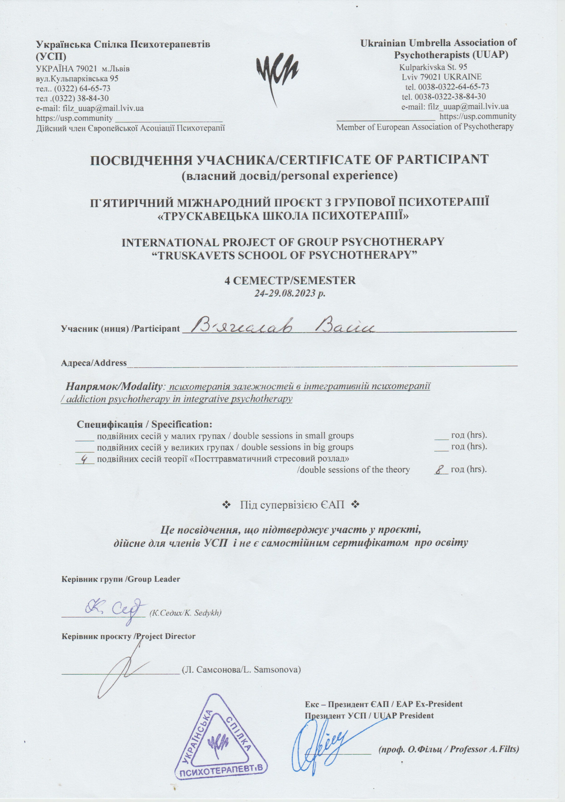 Процес реабілітації здійснюється відповідно до авторської методики реабілітації та соціальної адаптації залежних “РЕНЕСАНС” (реєстр. № 33124 МОН України) і виконується дипломованими сеціалістами в цьому напрямі.