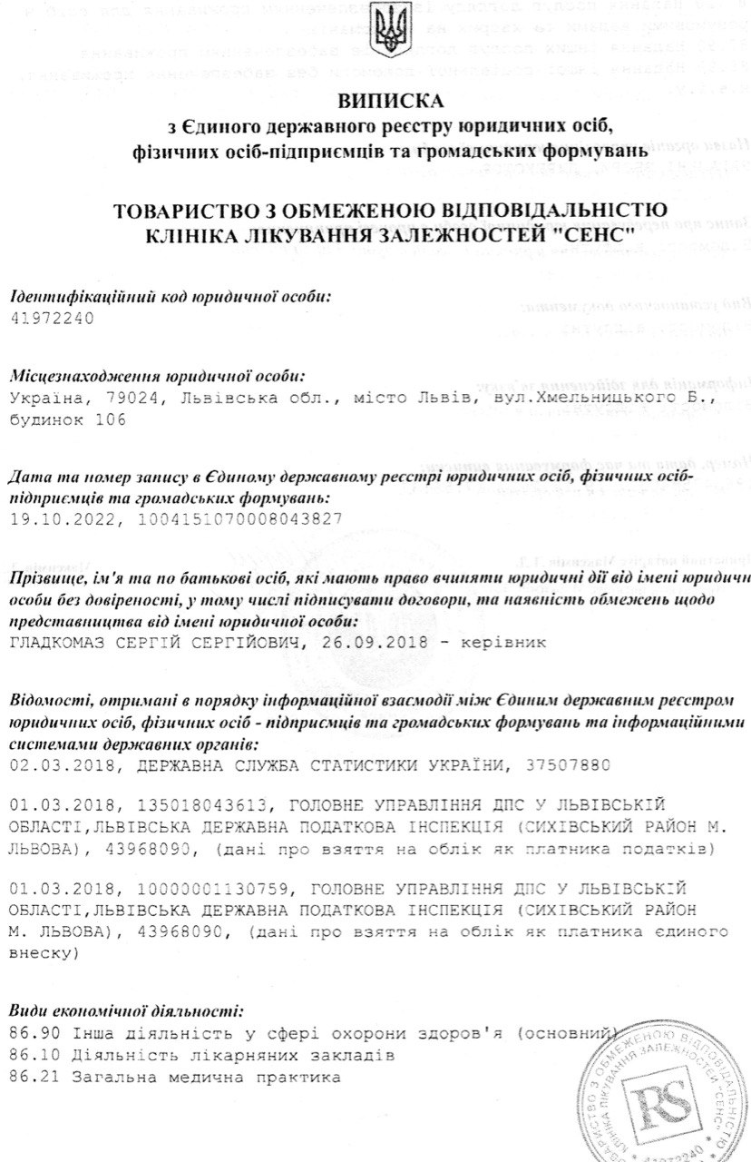 Будьте уважні та обережні! Жодна клініка, наркологічний або реабілітаційний центр не має права надавати медичні послуги без ліцензії МОЗ України та відповідного штату кваліфікованих лікарів. При пошуку відповідного закладу перевіряйте нявність ліцензії на медичну практику!